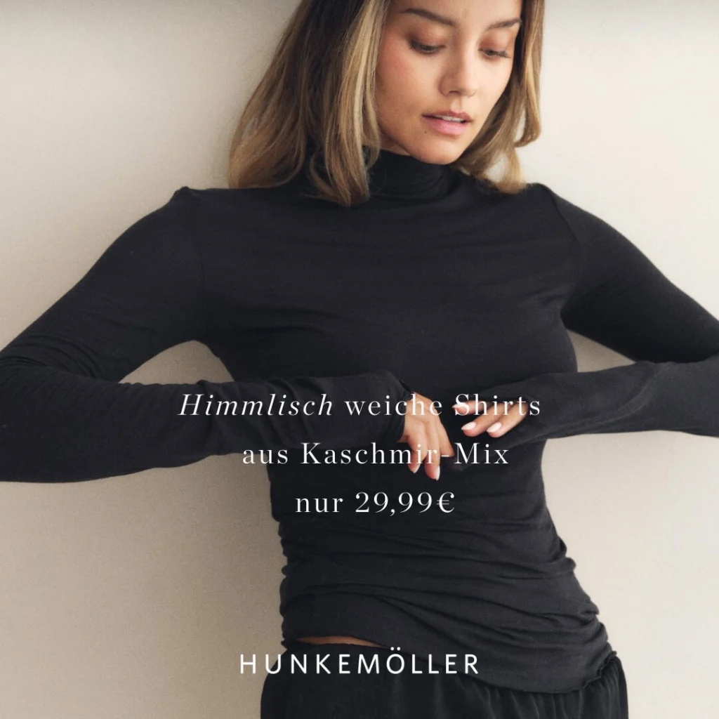 Neu von Hunkemöller: Shirts aus Kaschmir-Mix für nur 29,99 € – für Momente, in denen Du Dich einfach nach Sanftheit sehnst. Himmlisch weich, federleicht und mit maximalem Tragekomfort – diese vielseitigen Shirts sind gemacht zum Entspannen, Stylen oder Wohlfühlen. Erhältlich mit Rollkragen oder U-Boot-Ausschnitt in mehreren Farben.